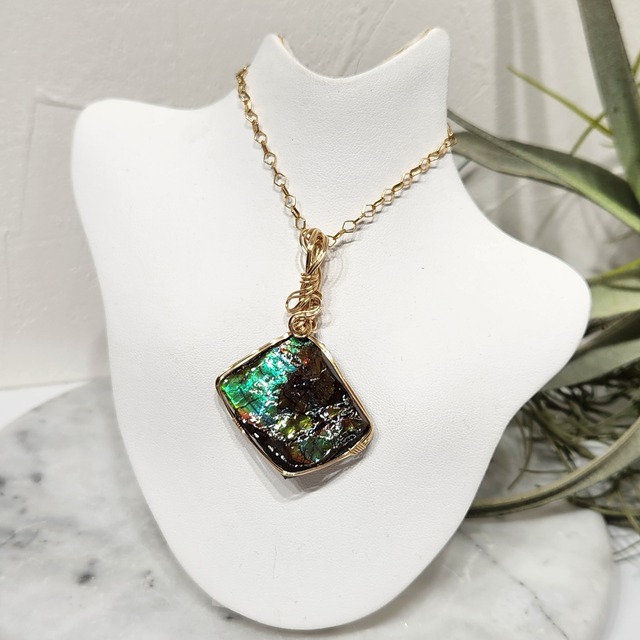 アンモライトペンダントトップ~冥~(14kgfネックレスチェーン付)