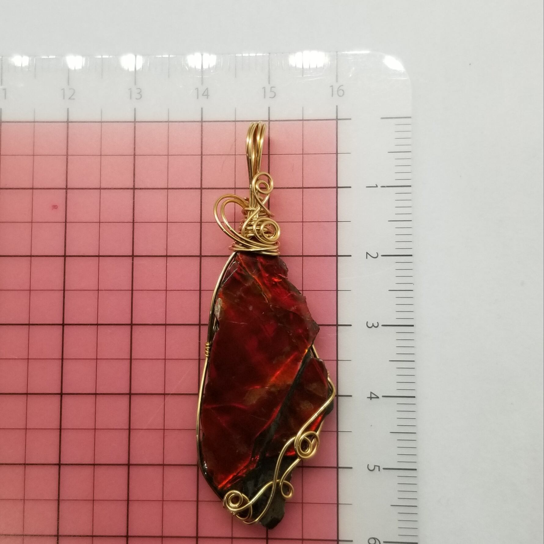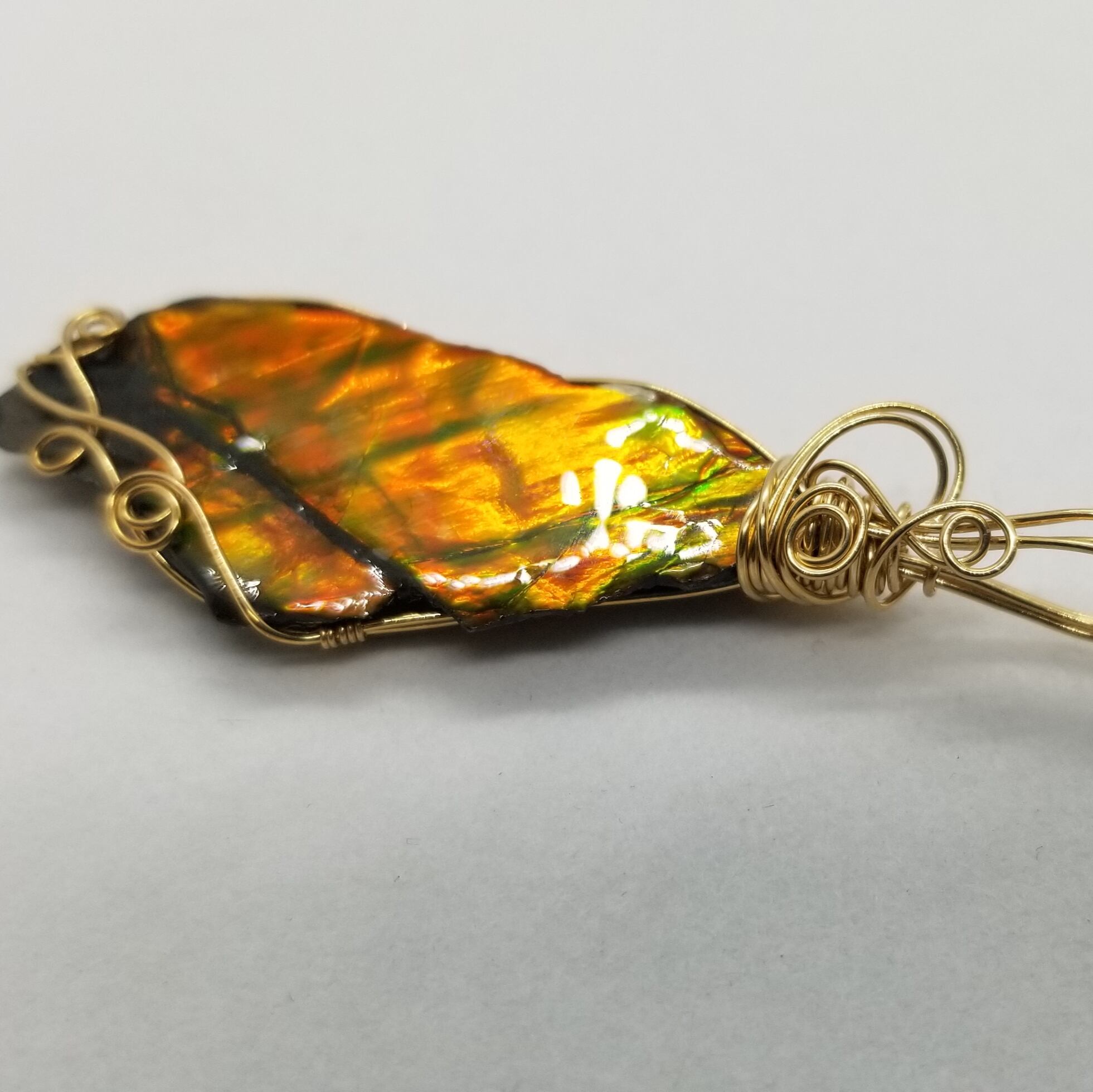 アンモライトの原石欠片をを14kgfワイヤーでペンダントトップに仕立てました。