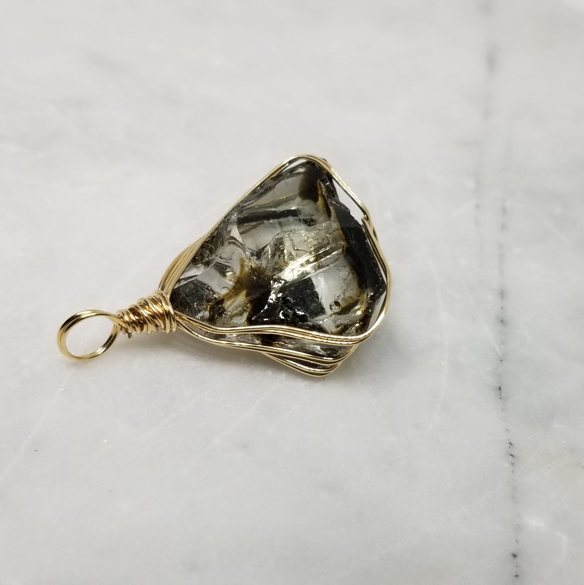 インドネシア産のアンダラクリスタルを14kgfワイヤーでペンダントトップに仕立てました。