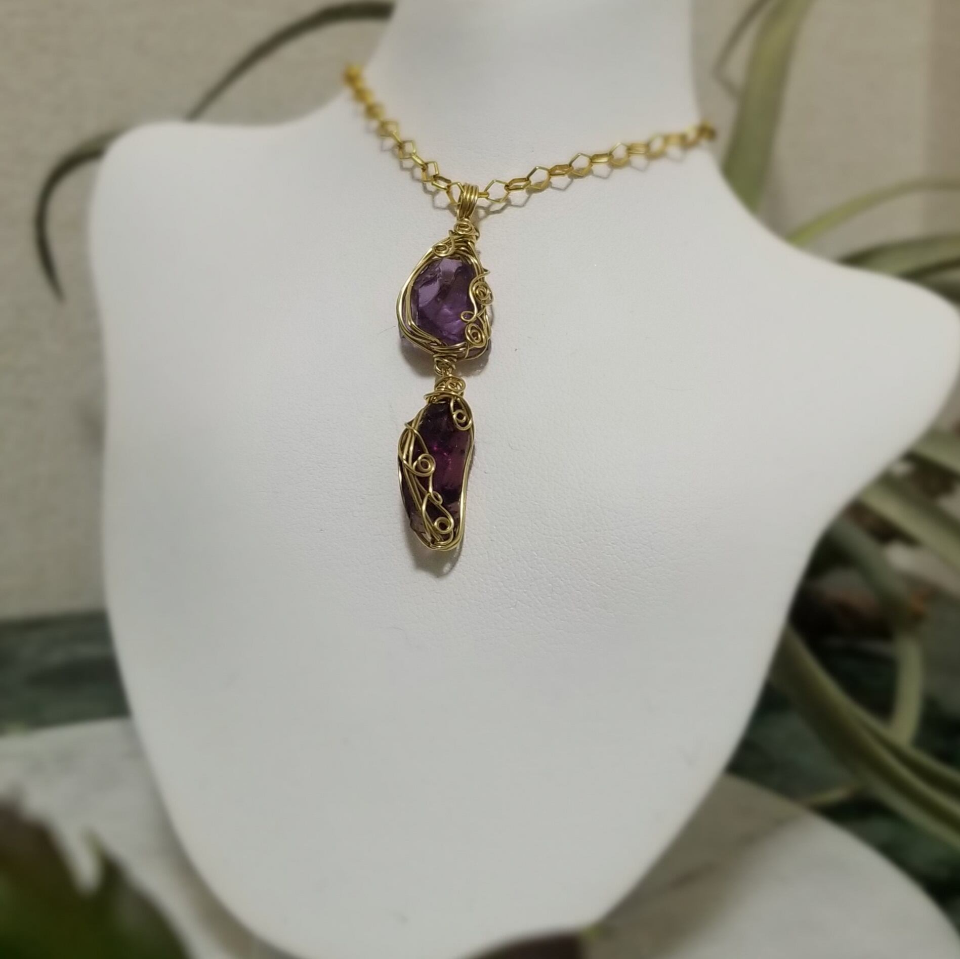 濃いパープル、薄いパープル、2つのアンダラクリスタルをワイヤー装飾多めに華やかに仕上げました。
