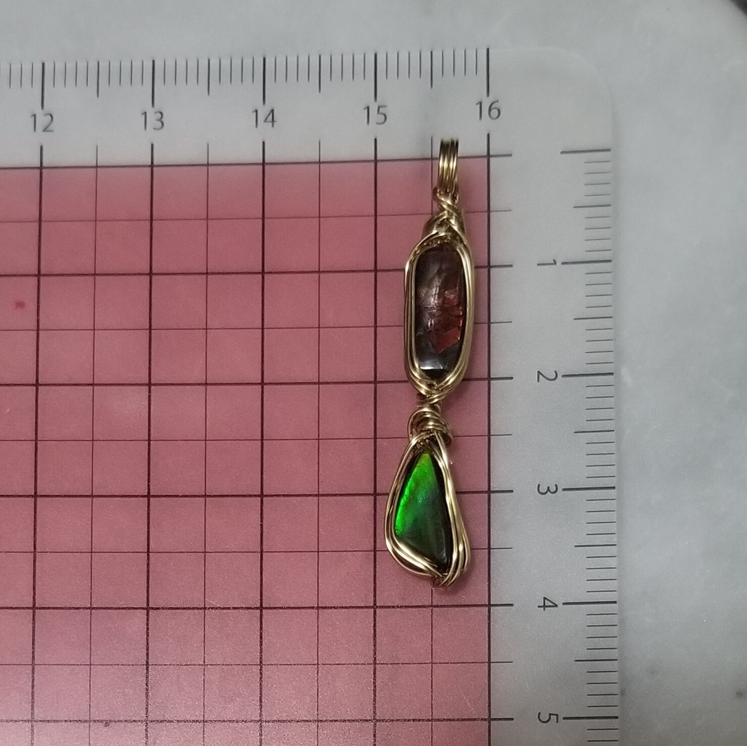 アンモライトナチュラルルースを14kgfワイヤーでペンダントトップに仕立てました。