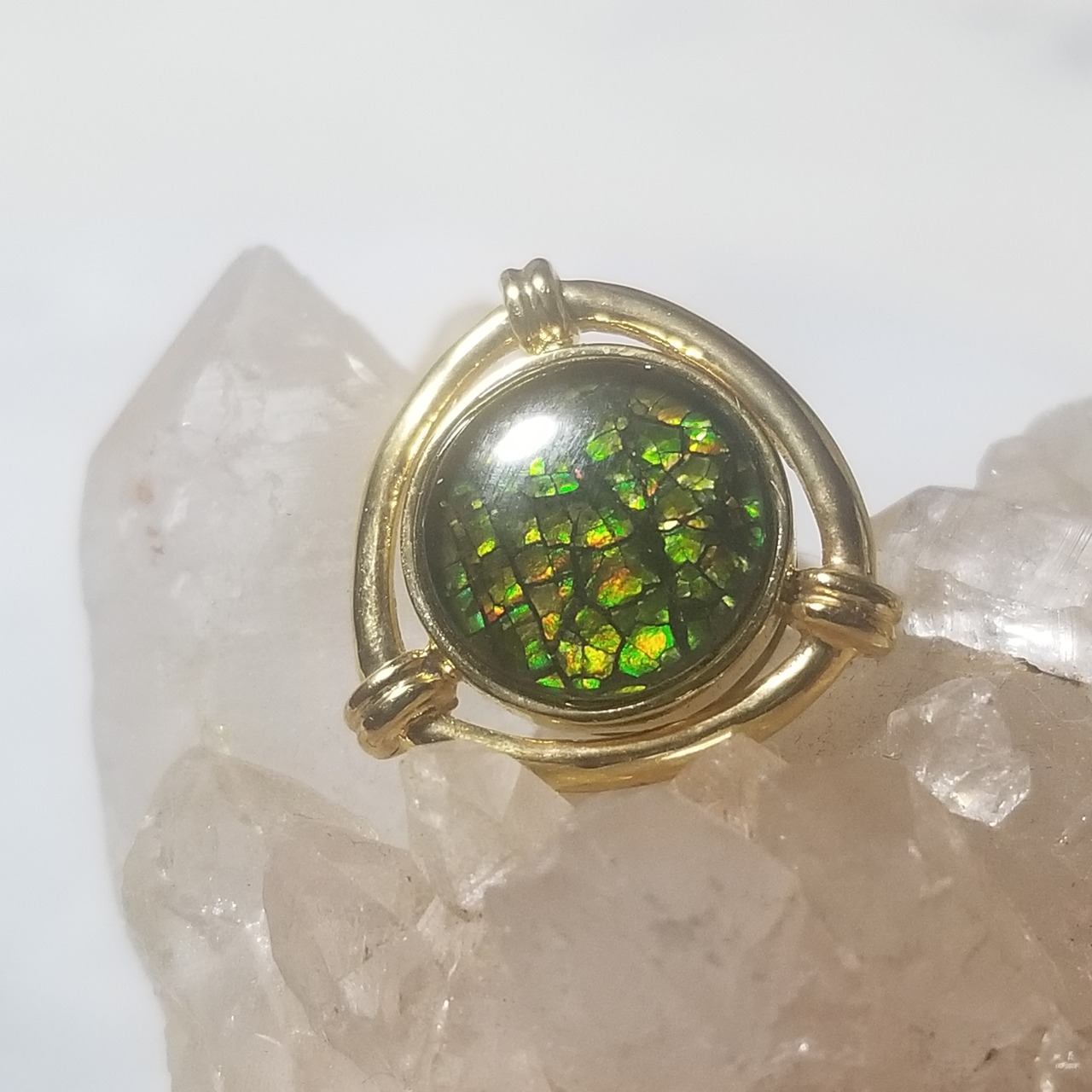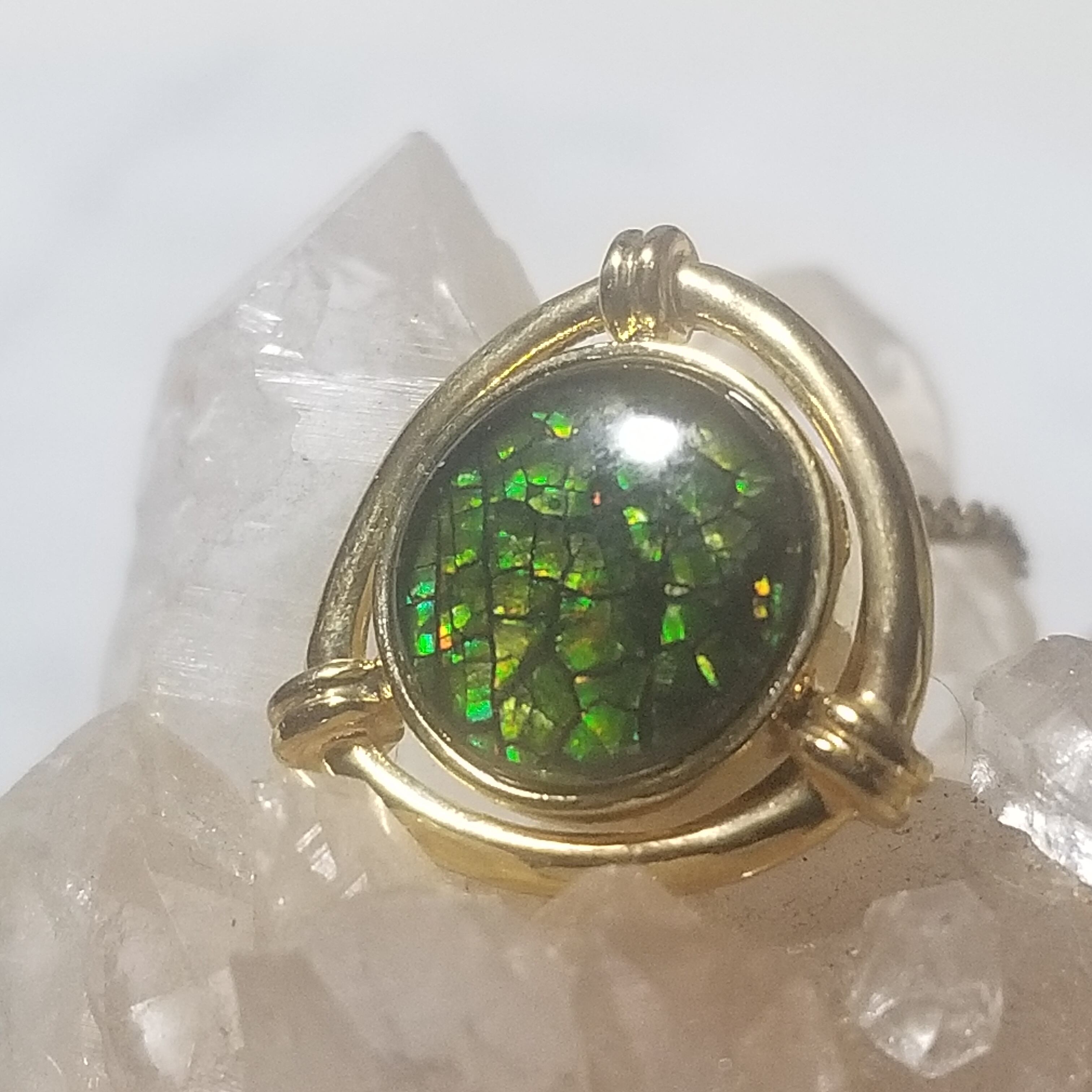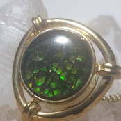 産出はカナダ.アルバータ州のごく一部の地域に限られる、地球上でただ1箇所しか産出しない、貴重な宝石です。