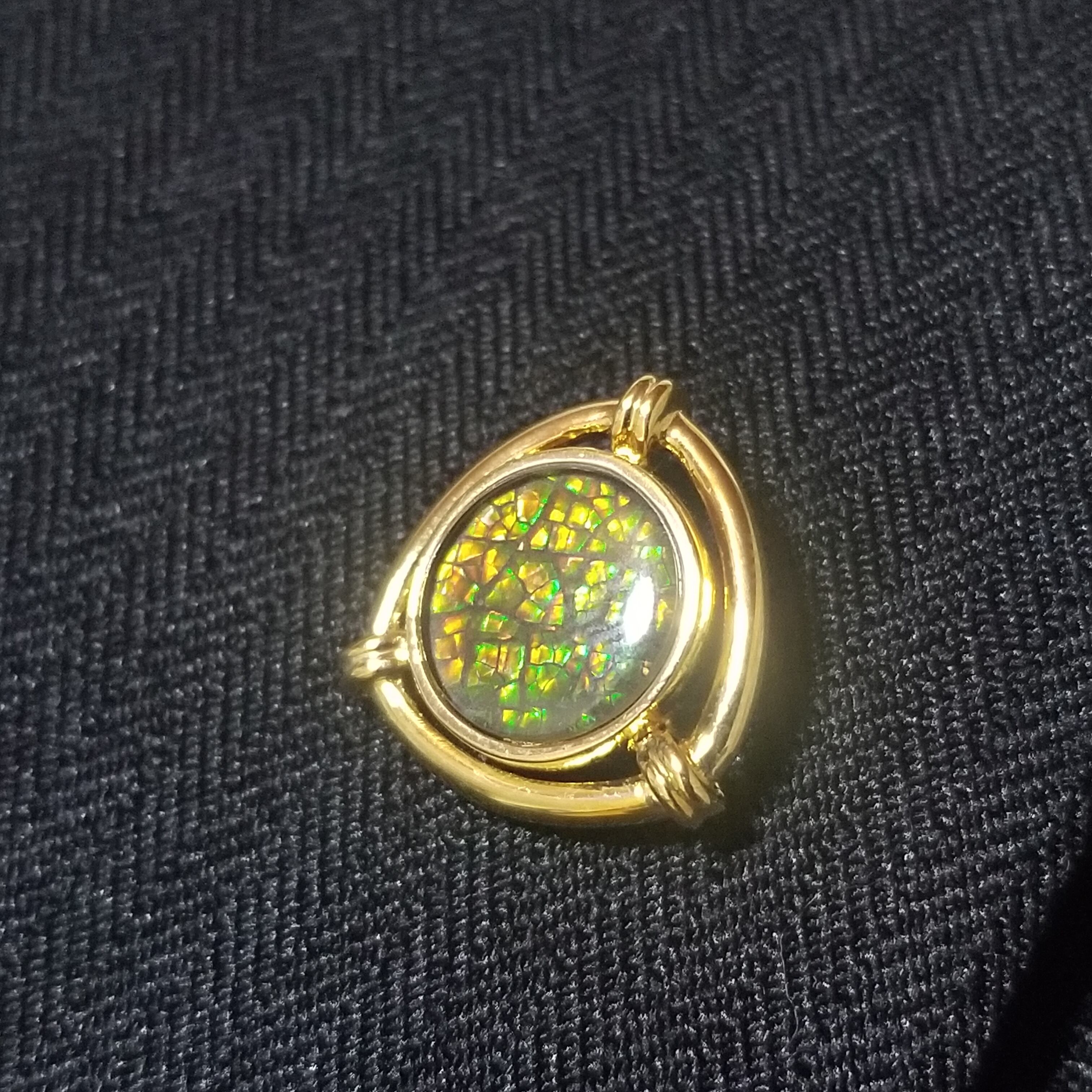 ドラゴンスキン(※1)のとても美しい新古品のアンモライトピンバッジです。