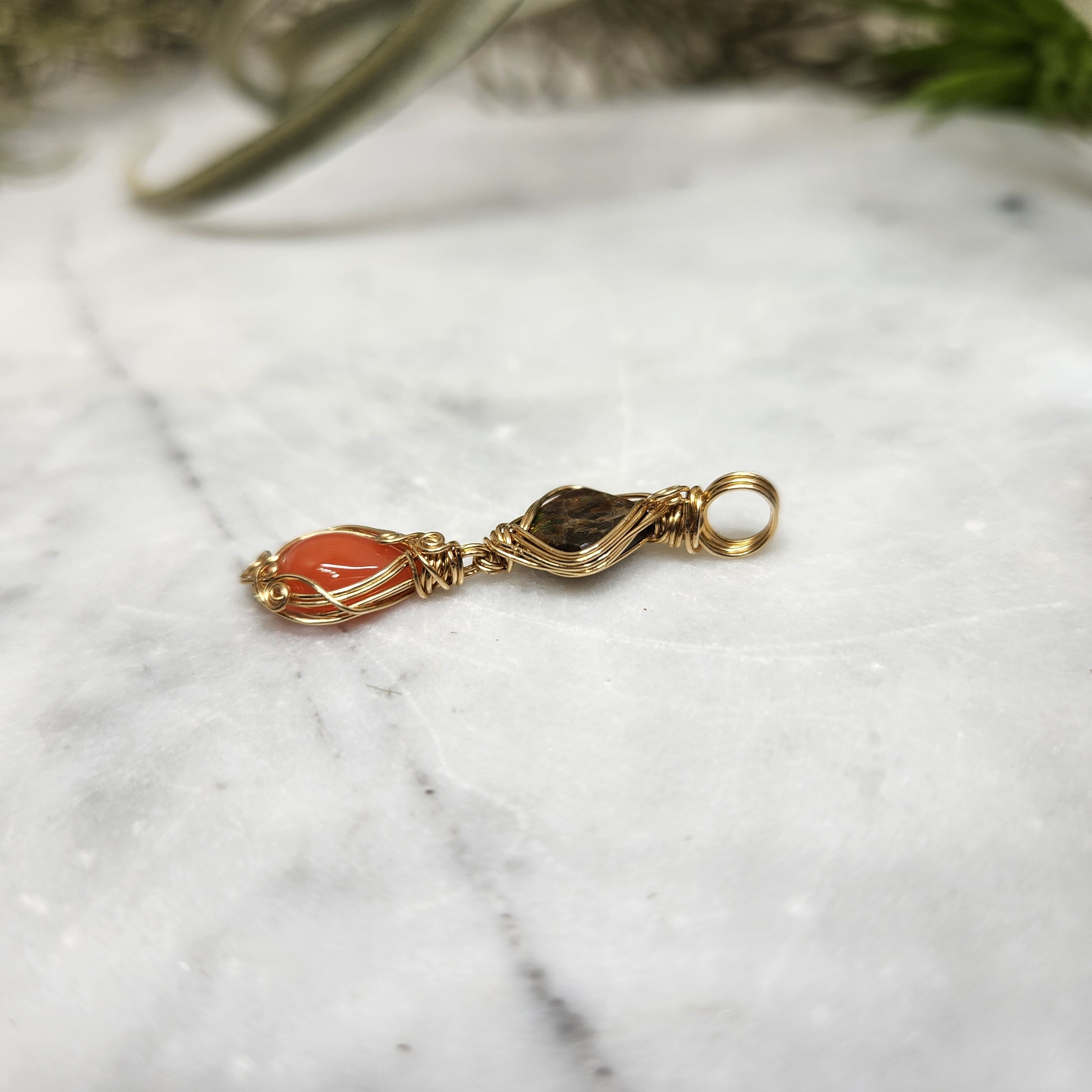 アンモライトに深海サンゴをあわせ14kgfワイヤーでペンダントトップに仕立てました。