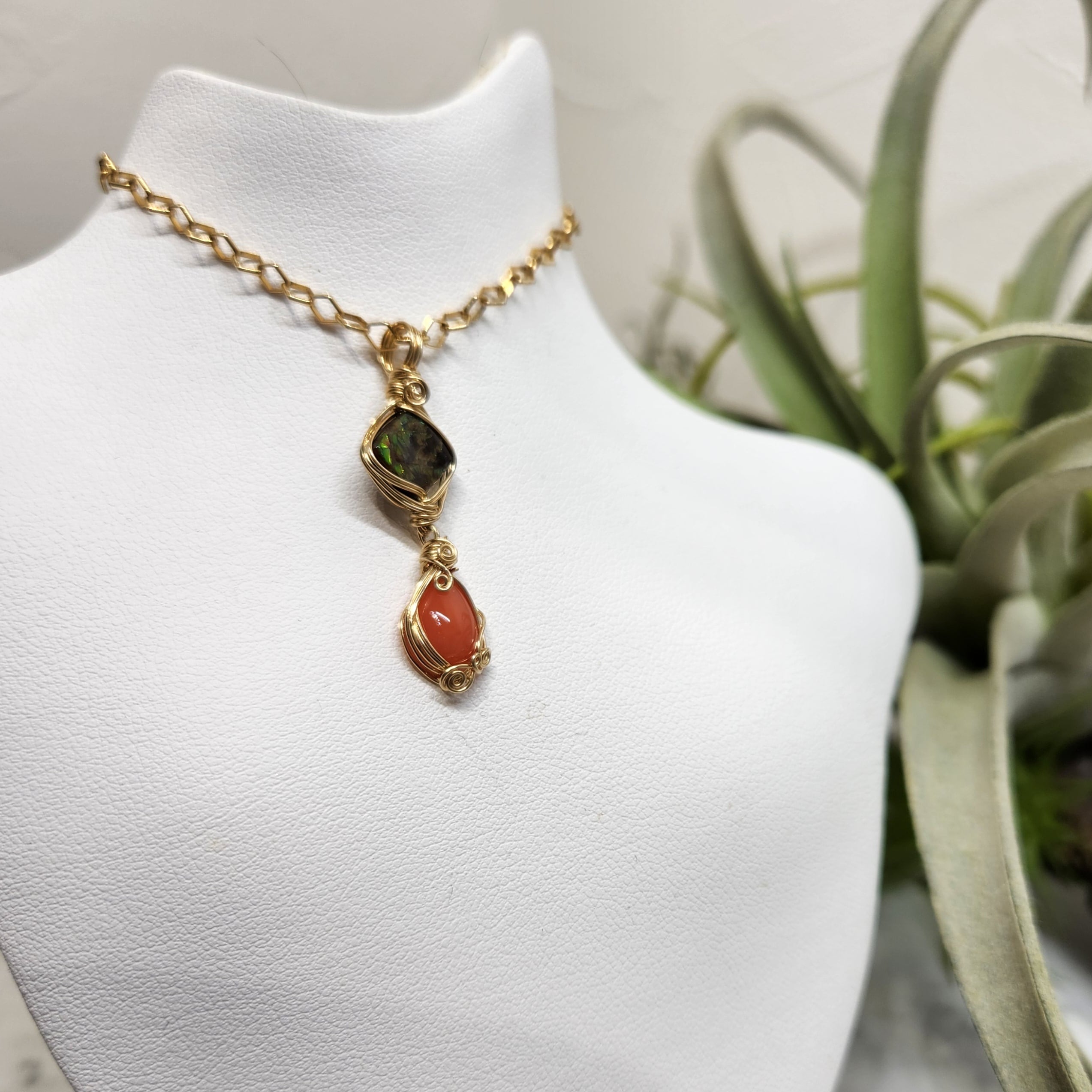 きまぐれシリーズ☆アンモライト×サンゴ ペンダントトップ